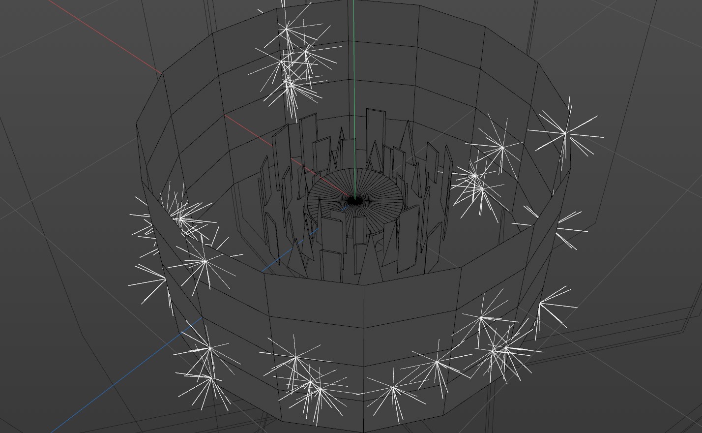 = Ring with 25 randomly positioned lights. (shadow type: area, intensity: 25%)